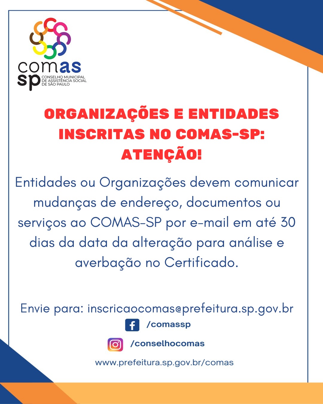Orientações para mudança de endereço, documentação ou serviços no COMAS
