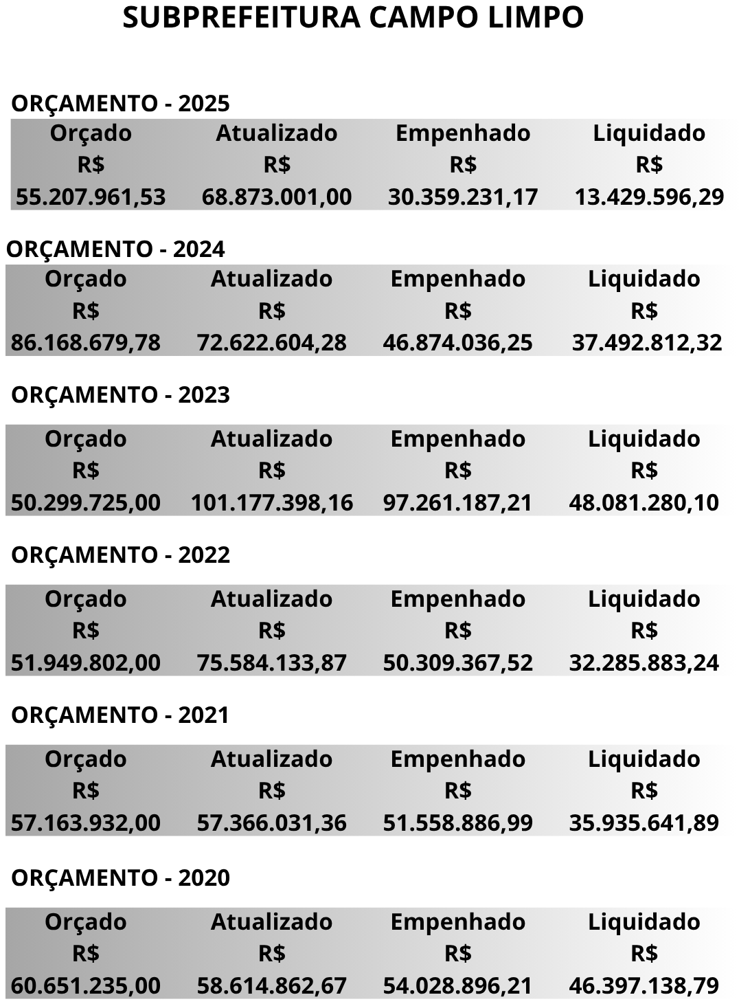 >>> Não consta nenhuma meta vinculada à Subprefeitura Campo Limpo no referido Plano de Metas 2025-2028. <<<