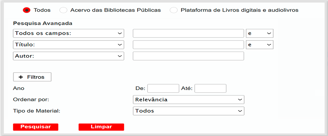 Explicações para a pesquisa simples, por índice, por palavra ou avançada no acervo online.