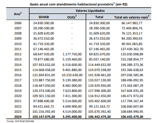 Cumpre salientar que as rubricas referentes ao programa “Mananciais” e “Urbanização de Favelas” incorporam investimentos realizados para a consolidação de assentamentos precários e para a provisão habitacional.