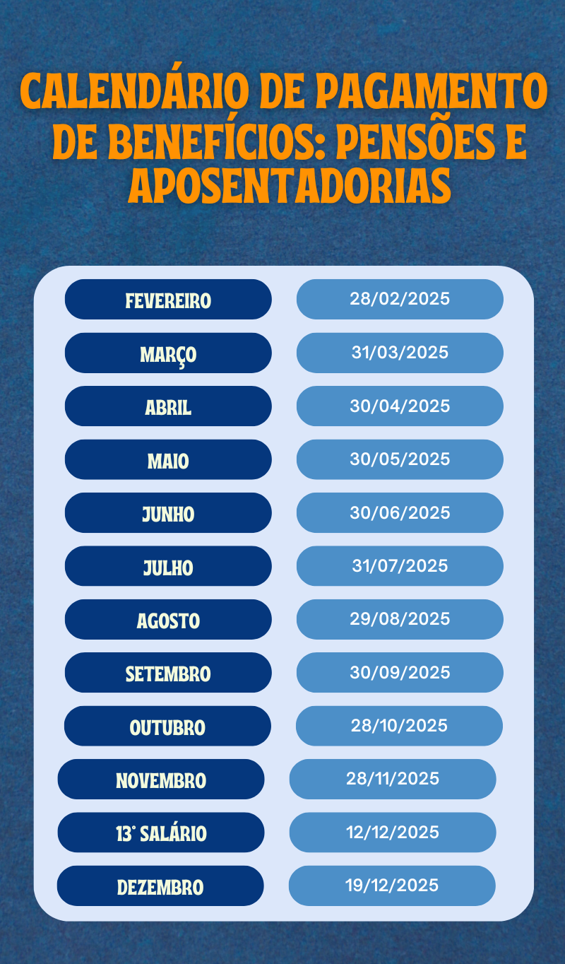Calendário de pagamento de benefícios de pensão e aposentadoria do ano de 2025