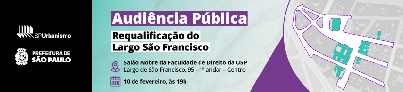 A Prefeitura de São Paulo, por meio da São Paulo Urbanismo e da Secretaria Municipal de Urbanismo e Licenciamento (SMUL), realiza no dia 10 de fevereiro, às 19h, audiência pública para apresentar proposta de requalificação do Largo São Francisco, um dos espaços mais emblemáticos do centro histórico da capital. O encontro será realizado no Salão Nobre da Faculdade de Direito da Universidade de São Paulo.