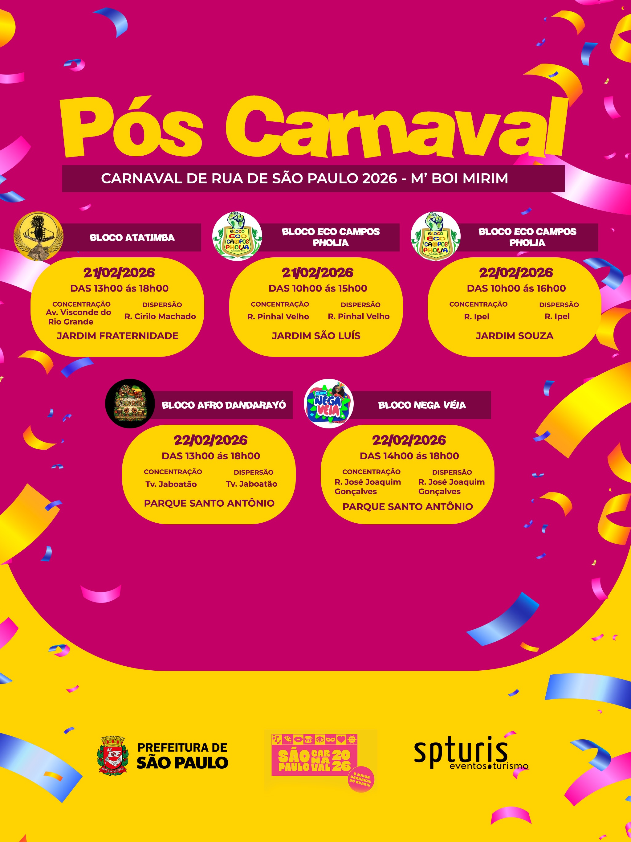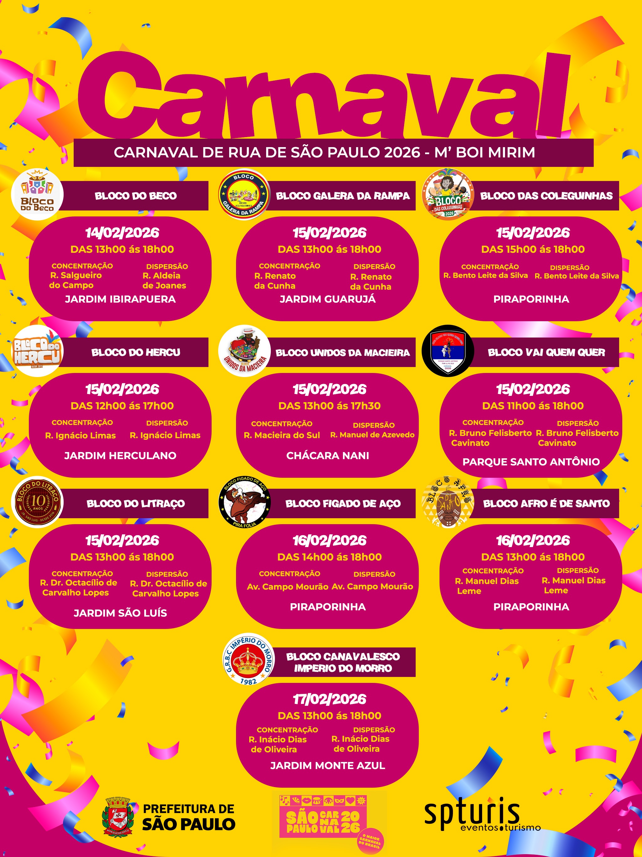 Confira a programação completa dos bloquinhos da região: