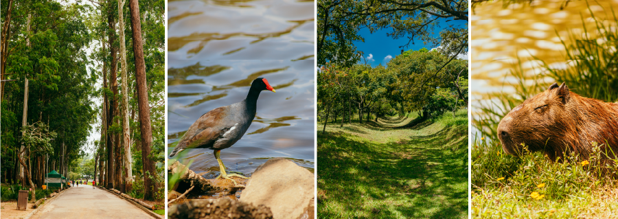 A rica FLORA reúne eucaliptais (Eucalyptus sp.), remanescentes da Mata Atlântica com mata ciliar, campos antrópicos, brejos, áreas ajardinadas, bosques heterogêneos, maciços arbóreos, cafezal (Coffea arabica), bosque de cerejeiras (especialmente Prunus x yedoensis) e um viveiro de produção de mudas. Destaques: aldrago (Pterocarpus rohrii), angico (Anadenanthera colubrina), araribá-rosa (Centrolobium tomentosum), bambu-chinês (Bambusa tuldoides), bambu-imperial (Bambusa vulgaris), canela-ferrugem (Nectandra oppositifolia), copaíba (Copaifera langsdorffii), espatódea (Spathodea campanulata), falsa-figueira-benjamim (Ficus microcarpa), falsa-seringueira (Ficus elastica), flor-de-abril (Dillenia indica), gameleira-brava (Ficus organensis), ginkgo (Ginkgo biloba), grevílea-gigante (Grevillea robusta), ingá-ferradura (Inga sessilis), ipê-amarelo (Handroanthus chrysotrichus), ipê-branco (Tabebuia roseoalba), jequitibá-rosa (Cariniana legalis), jerivá (Syagrus romanzoffiana), liquidâmbar (Liquidambar styraciflua), magnólia amarela (Magnolia champaca), magnólia-branca (Magnolia grandiflora), mangueira (Mangifera indica), paineira (Ceiba speciosa), pau-de-balsa (Ochroma pyramidale), pau-ferro (Libidibia ferrea var. leiostachya), pau-jacaré (Piptadenia gonoacantha), pitangueira (Eugenia uniflora), seafórtia (Archontophoenix cunninghamiana), sibipiruna (Poincianella pluviosa var. peltophoroides), suinã (Erythrina speciosa), tamboril (Enterolobium contortisiliquum) e tipuana (Tipuana tipu). Já foram registradas 147 espécies vasculares, das quais estão ameaçadas de extinção: canela-amarela (Nectandra barbellata), pau-brasil (Paubrasilia echinata), ipê-felpudo (Zeyheria tuberculosa), jequitibá-rosa (Cariniana legalis) e pinheiro-do-paraná (Araucaria angustifolia). Inventário de flora 2021.
