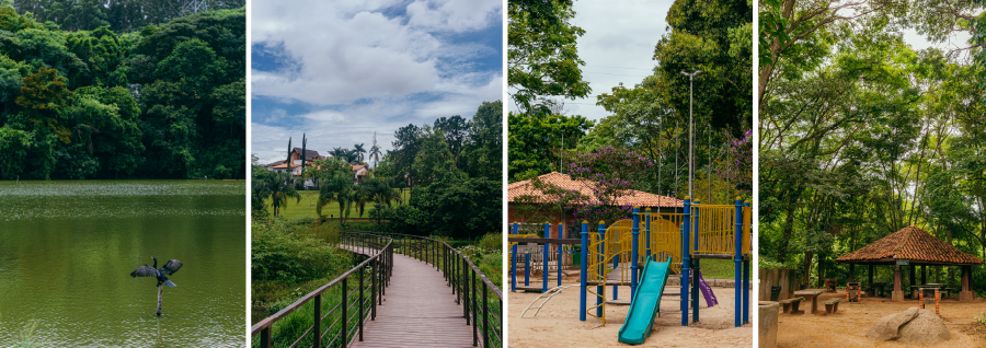 Churrasqueiras, quiosque, palco, aparelhos de ginástica, pista de Cooper, paraciclo, sanitários, playground com brinquedos típicos canadenses, quadras poliesportivas, lago com ponte de madeira para contemplação; acessibilidade para pessoas com deficiência nos banheiros e equipamentos de ginástica. Mantém atividade de Bosque da Leitura, sob a responsabilidade da Secretaria Municipal de Cultura. A atividade acontece aos domingos, das 10h às 16h.