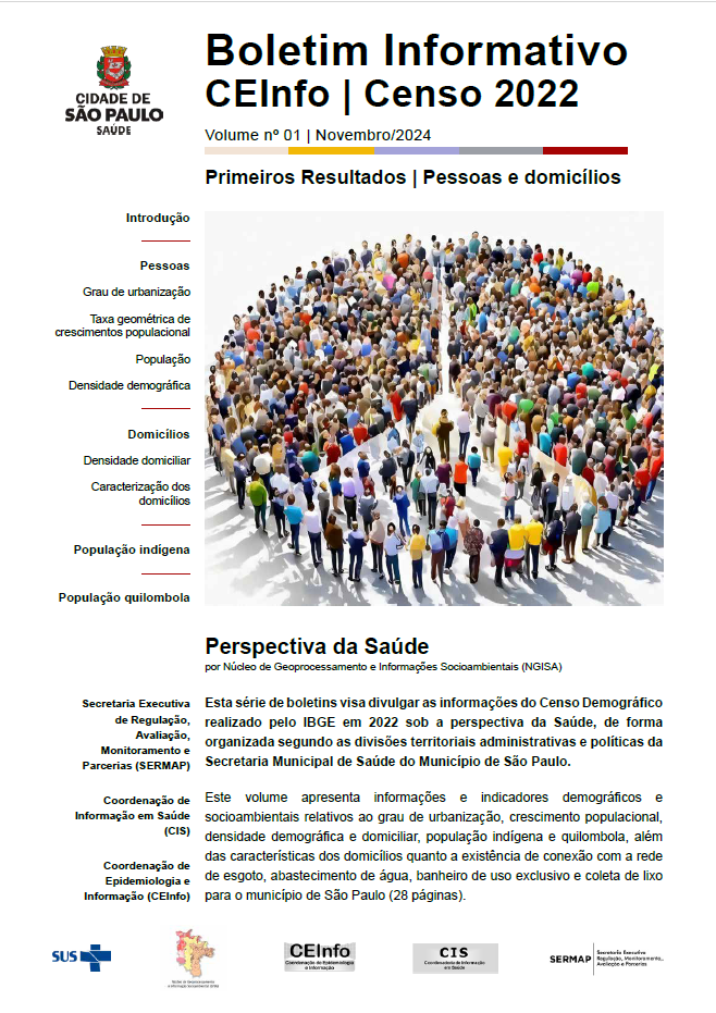 Conceito: Visam divulgar as informações dos Censos Demográficos do IBGE sob a perspectiva da Saúde, de forma organizada segundo as divisões territoriais administrativas e políticas da Secretaria Municipal da Saúde do Município de São Paulo.
