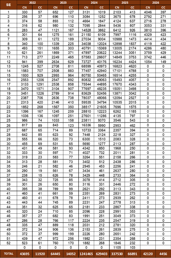 Casos notificados (CN) e confirmados (CC) de dengue, entre residentes no Município de São Paulo, segundo semana epidemiológica de início de sintomas (SE) e ano de início de sintomas. 2022 a 2026