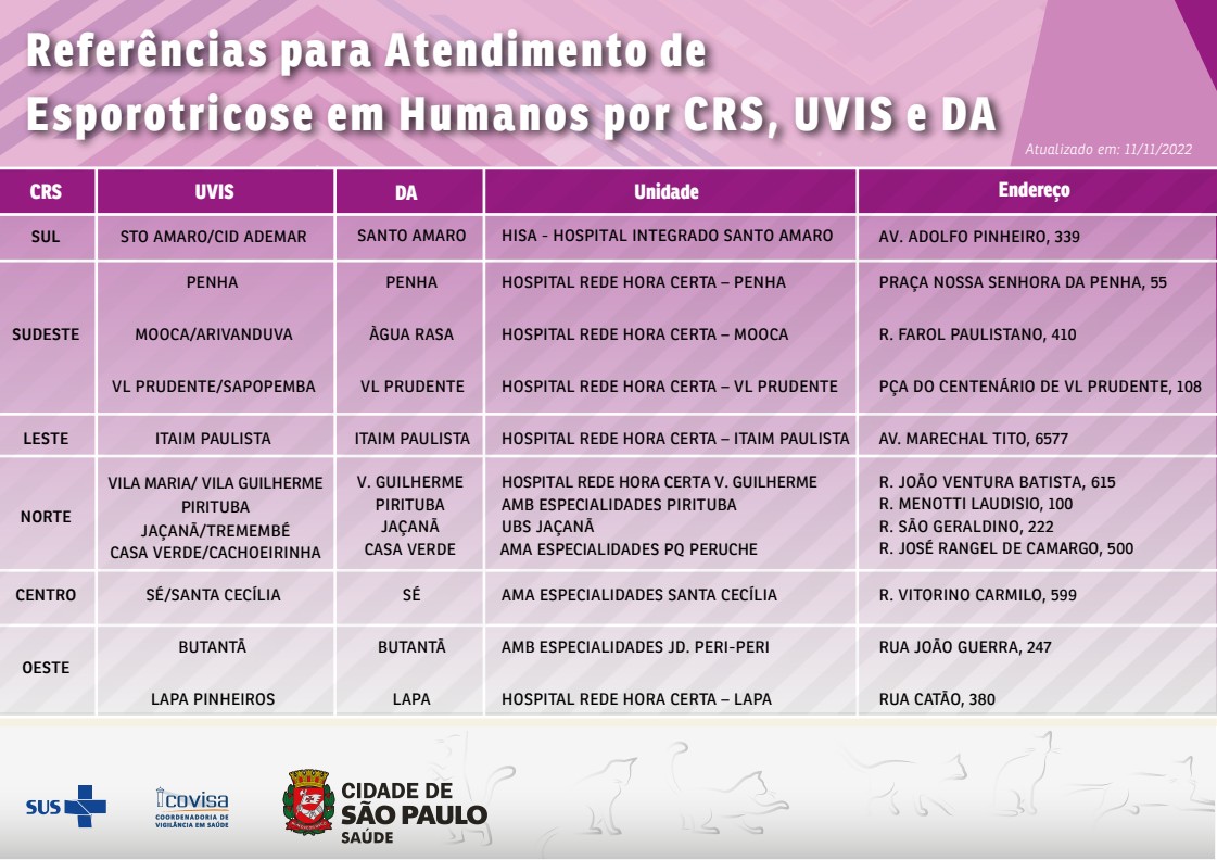 Nota Técnica para a Vigilância e Manejo Clínico da Esporotricose Humana no Município de São Paulo - 2020 -- atualizada em 03/07/2023