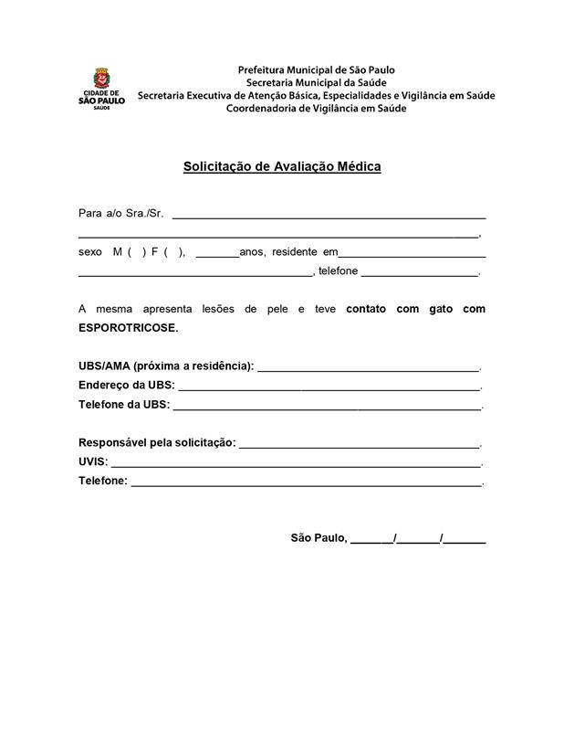 - Modelo de Solicitação de Atendimento Médico para Esporotricose Humana
