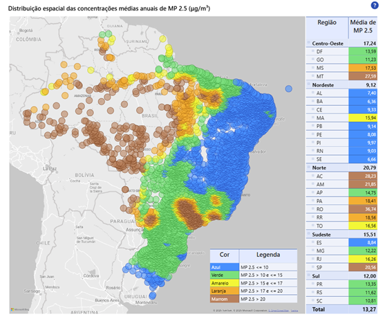 Diante desse panorama, o Ministério da Saúde, em parceria com o Ministério do Meio Ambiente, lançou, em junho de 2024, o Painel Vigiar: Poluição Atmosférica e Saúde Humana, o qual, através de sistemas de modelagem, identifica áreas com maior exposição ao material particulado fino (MP2,5).