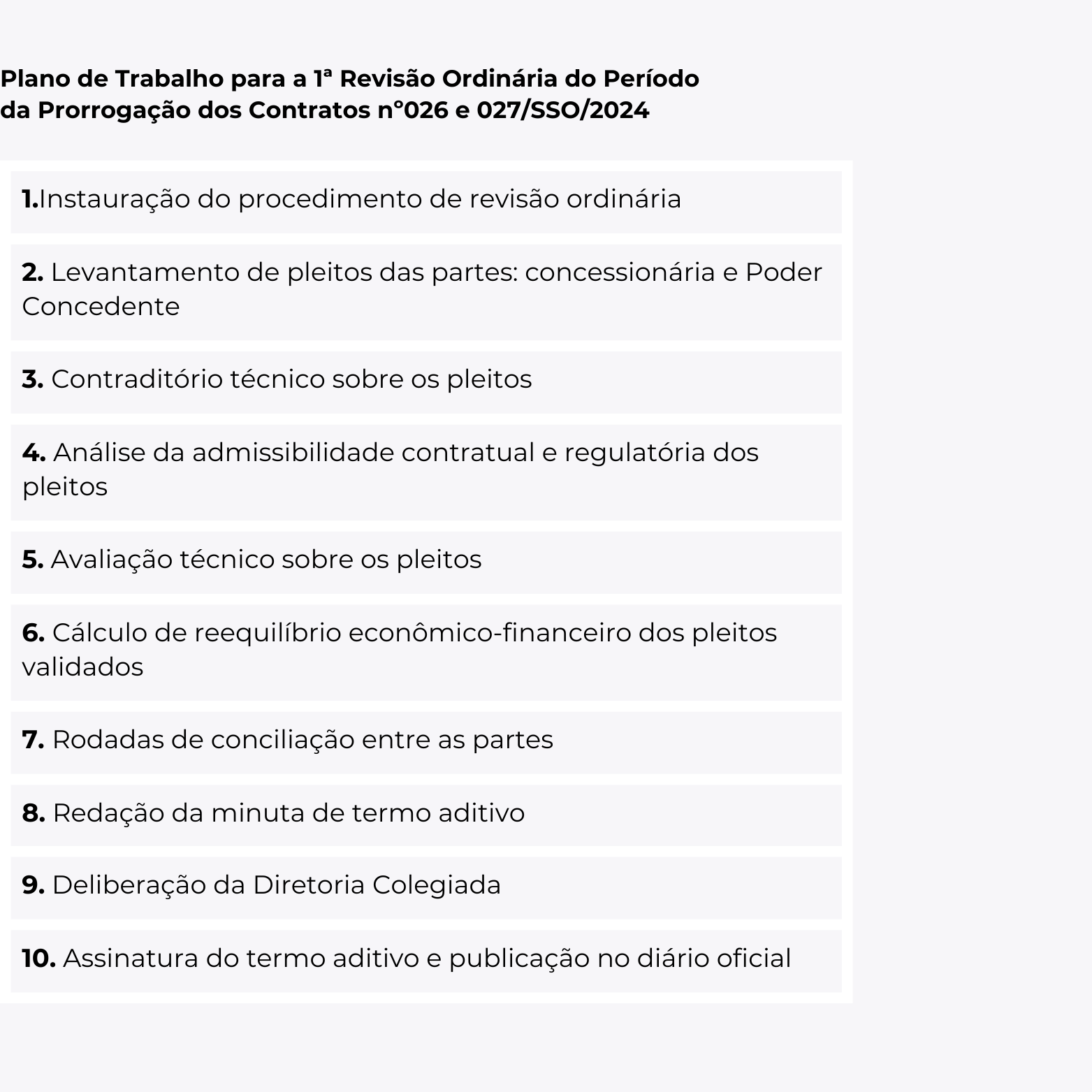 - Controle da execução de obras de infraestrutura e incremento da receita tarifária vinculada aos investimentos.