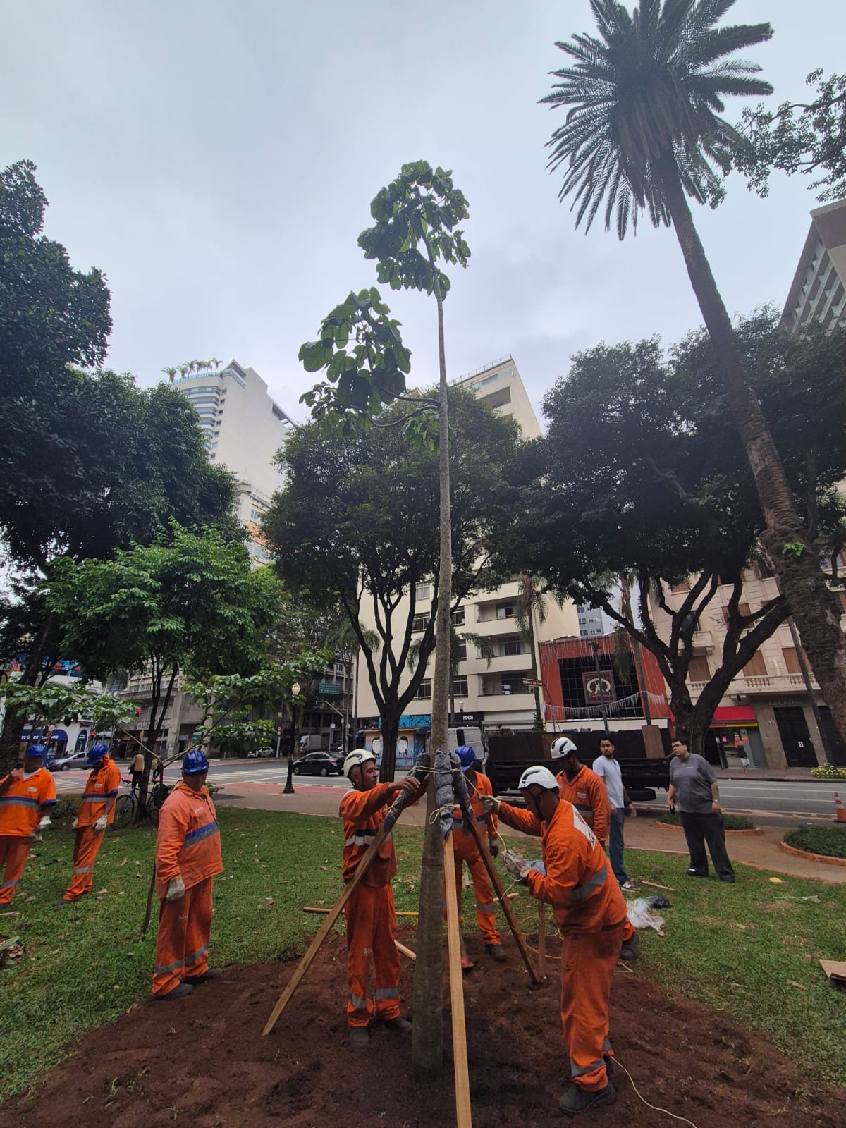 O plantio foi feito pela Prefeitura de São Paulo, em parceria com a sociedade civil, por meio dos movimentos Novas Árvores Por Aí e Pedra 90, que viabilizaram a doação da muda que possui 6 metros de altura.